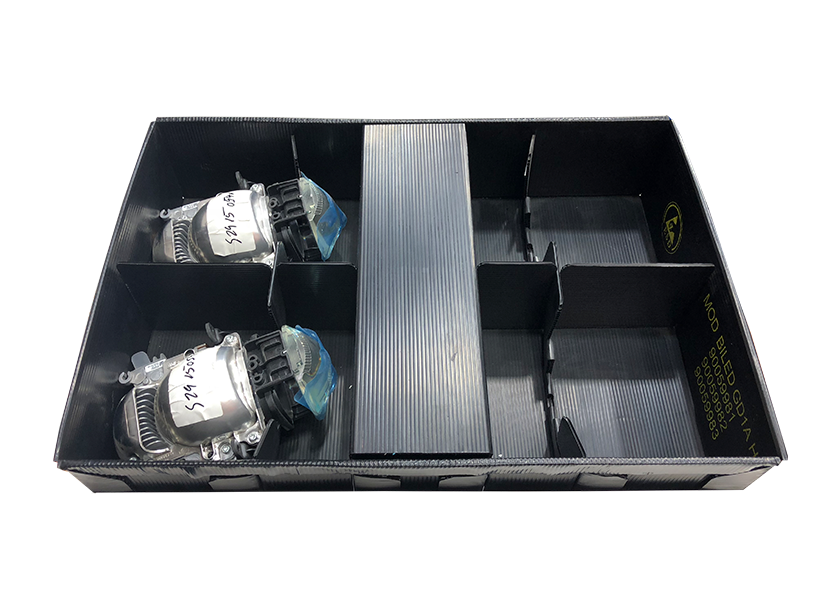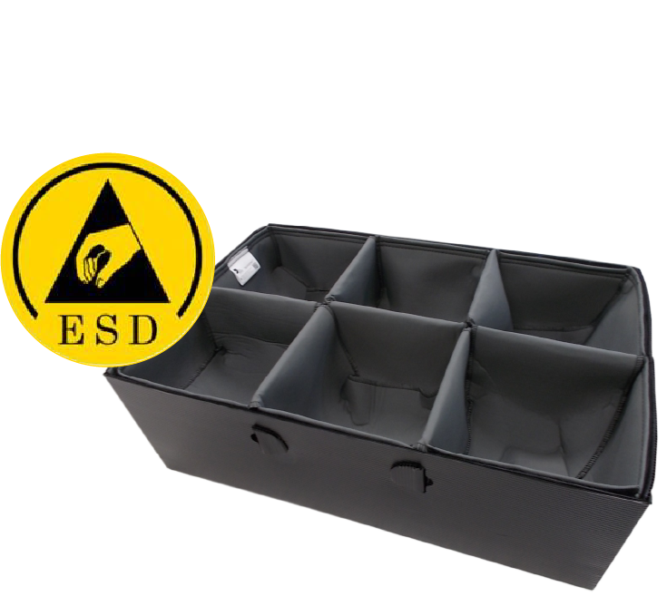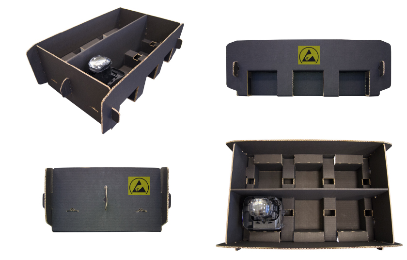 Termoconformados, EPP, polipropileno, plásticos, cartón, textil… todas ellas con el aditivo Carbon Black en el material principal, que las hace adecuadas para poder transportar productos ESD sin deteriorar sus cargas.